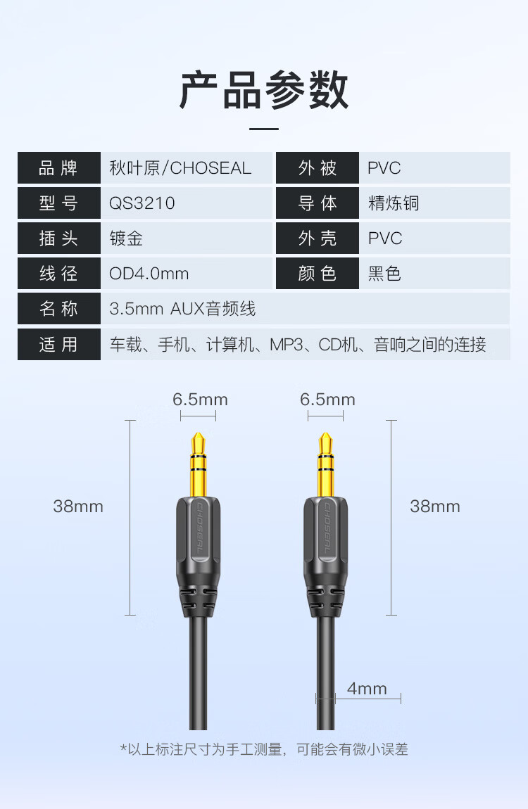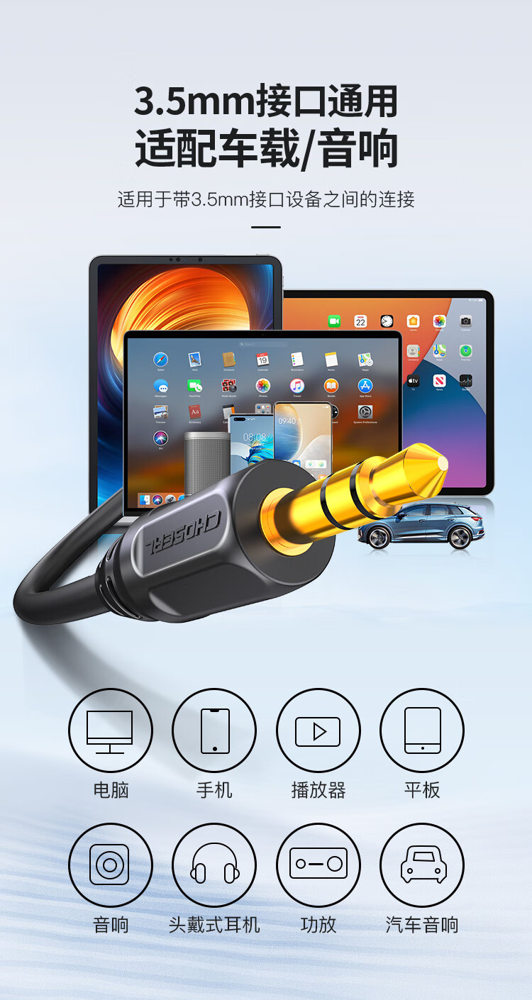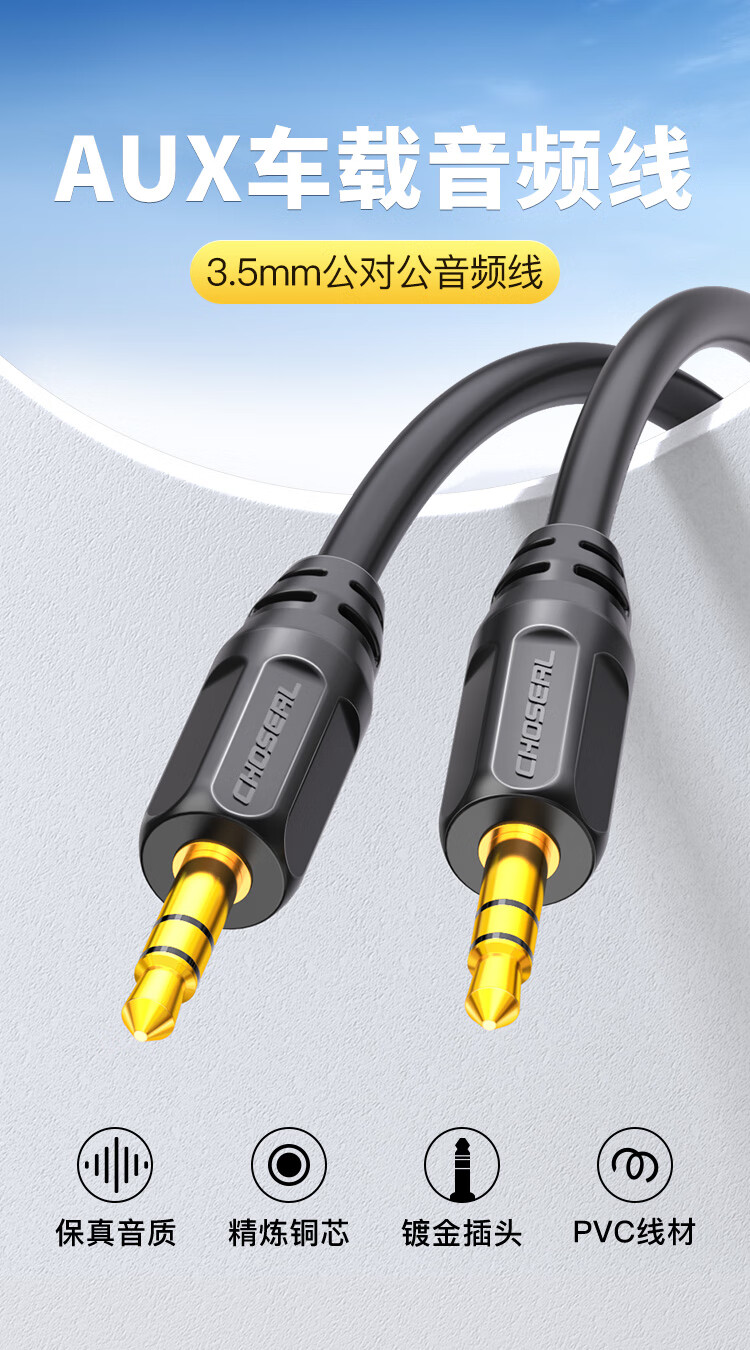 秋叶原(CHOSEAL) 车载AUX音频线 3.5对3.5耳机转接线 手机电脑接音响功放连接线 1米 QS3210AT1