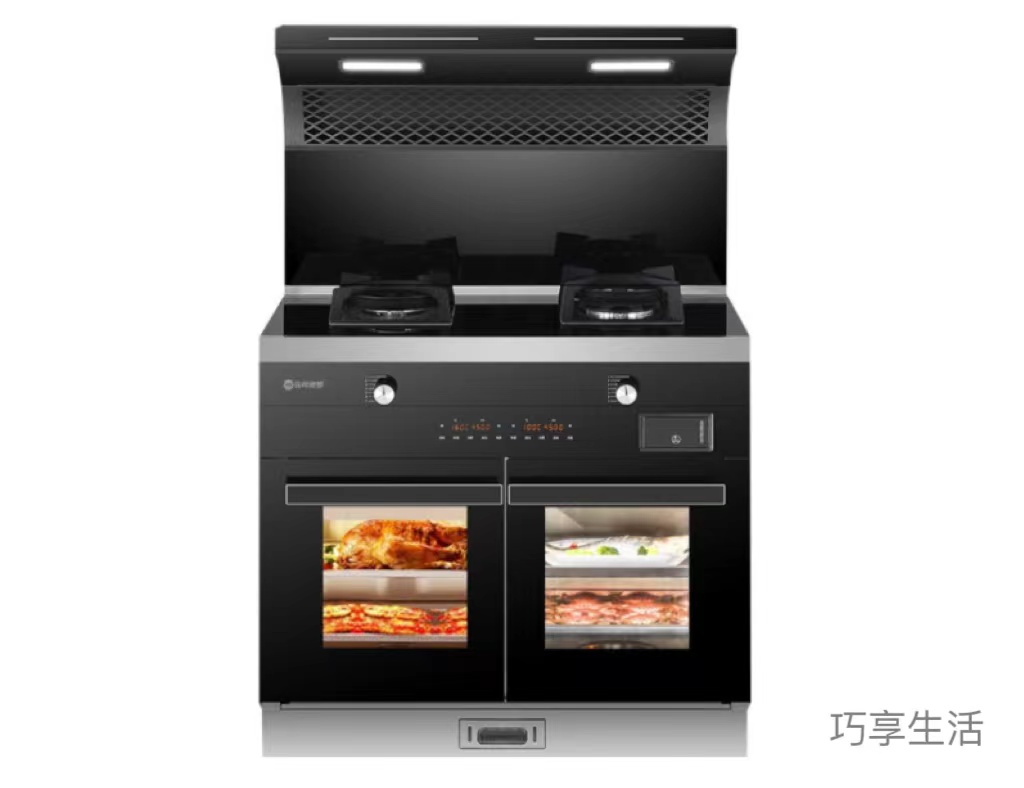 马可波罗集成灶:马可波罗集成灶以其卓越的吸烟性能著称,拥有高达19m³/min的大风量,配合低空侧吸设计,有效防止烹饪过程中烟雾外溢,保持厨房空气清新。多重安全保护系统,如过热保护、漏气报警等,确保用户在使用过程中的安全。其独特的暖菜宝功能,不仅能保持菜肴温度,还可作为实用的置物空间,提升厨房使用体验。此外,低空近吸设计与烟灶联动智能触控系统的结合,使得烹饪过程更加轻松便捷。当灶具开启时,油烟机自动启动,有效避免了手动操作的繁琐。
